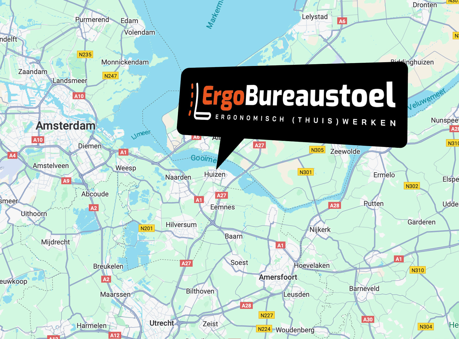 Heb je vragen over onze producten of wil je jouw bureaustoel graag eerst bekijken voor je een aankoop doet? Kom dan langs in onze showroom. Je vindt onze showroom in Huizen, op kleine afstand van grote steden als Amsterdam, Utrecht en Lelystad.
